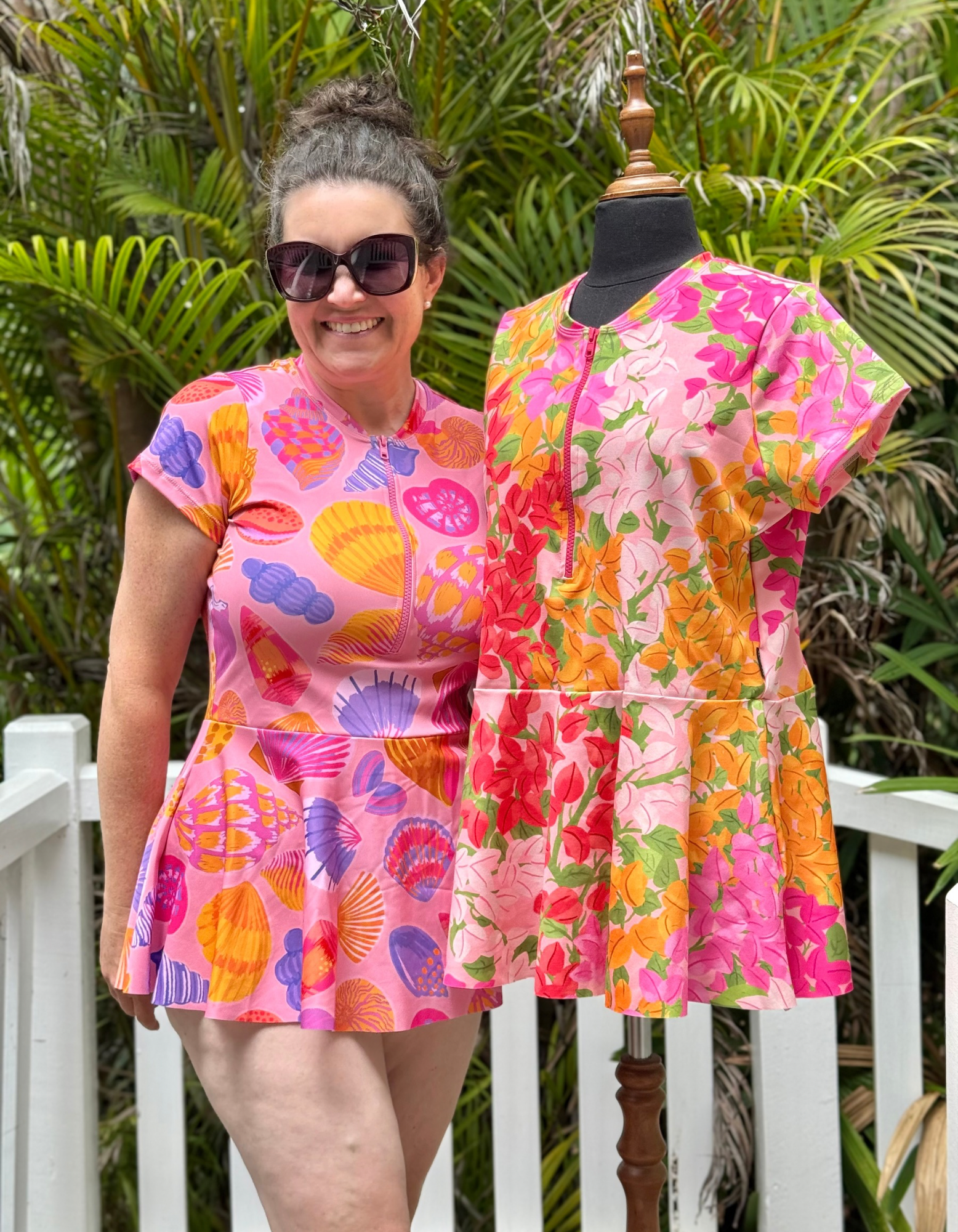 MADE TO ORDER- 'Beautiful Bougs' Women's curvy peplum Rashie New Fit