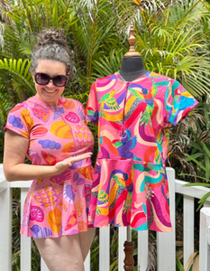 Made to order details: As this will be a final offering before we close up early in 2026 these are available to order only until December 7th. They will then be cut and sent to our seamstress in Brisbane but with it being right on the Christmas and New Year season anticipate these not being completely until late Jan at the very earliest, or possibly even into Mid Feb. So if you had been dreaming of a gorgeous new rashie and had missed out on your size in our retail offering this is a great and final chance. This is also the first collection that has our new size 26 and 28 available to order.